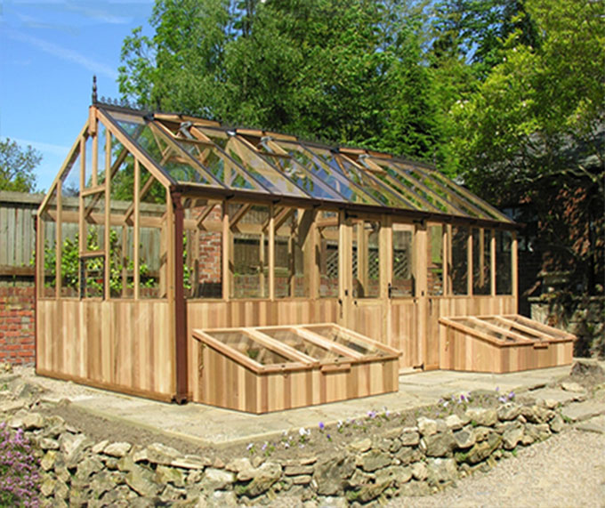 Cedar panels help to lower heating costs and add character to the overall look of the building. The glass to ground model gives you extra light and is ideal when you need growth from ground level. Careful consideration is given to every aspect, resulting in a superb and high-quality timber greenhouse.