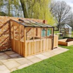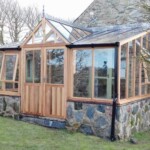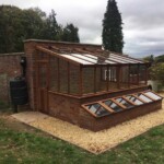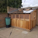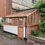 8ft x 25ft Bespoke lean-to cedar greenhouse and potting shed. Designed to fit ‘L’ shaped foundation and walls.