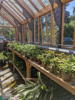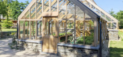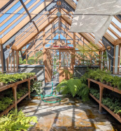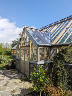 The greenhouse has been designed with 6″ x 2″ rafters to match the pre-existing building replaced by Woodpecker. The greenhouse has also been designed to complement the existing manual mechanical ventilation system. By request of the National Trust to keep the same characteristics as the previous greenhouse, the roof glazing has been split into multiple pieces. The haunches fitted within the greenhouse ridge are typical of the late 19th century Boulton and Paul designed greenhouses.