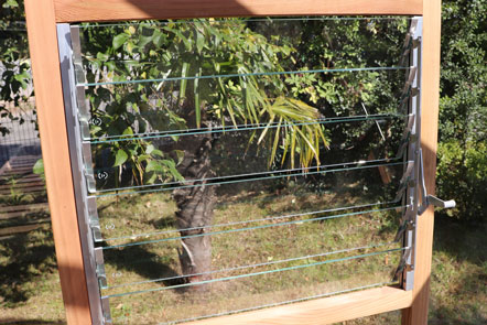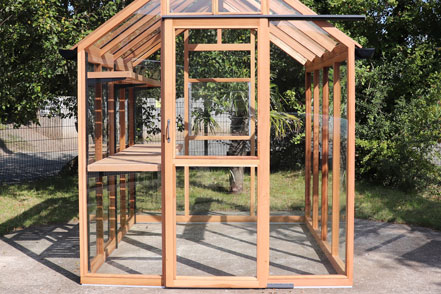 The framework is of the Seedarhouse greenhouse constructed entirely from Western Red Cedar (“Thuja Plicata”) which produces natural oils that act as preservatives to protect the wood from insect attacks and decay. Beauty aside, the Western Red Cedar’s practicality and cellular structure creates air spaces that give it an insulation value higher than most woods. Buildings which feature cedar panels tend to stay warmer in the winter. The Seedarhouse has manually operated roof vents allow ventilation around the greenhouse to keep it cooler in the summer.